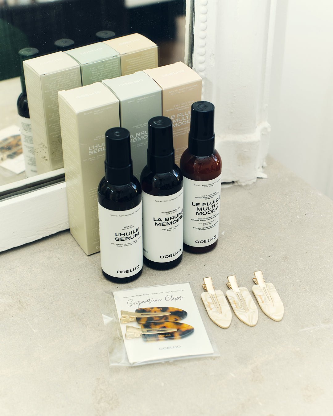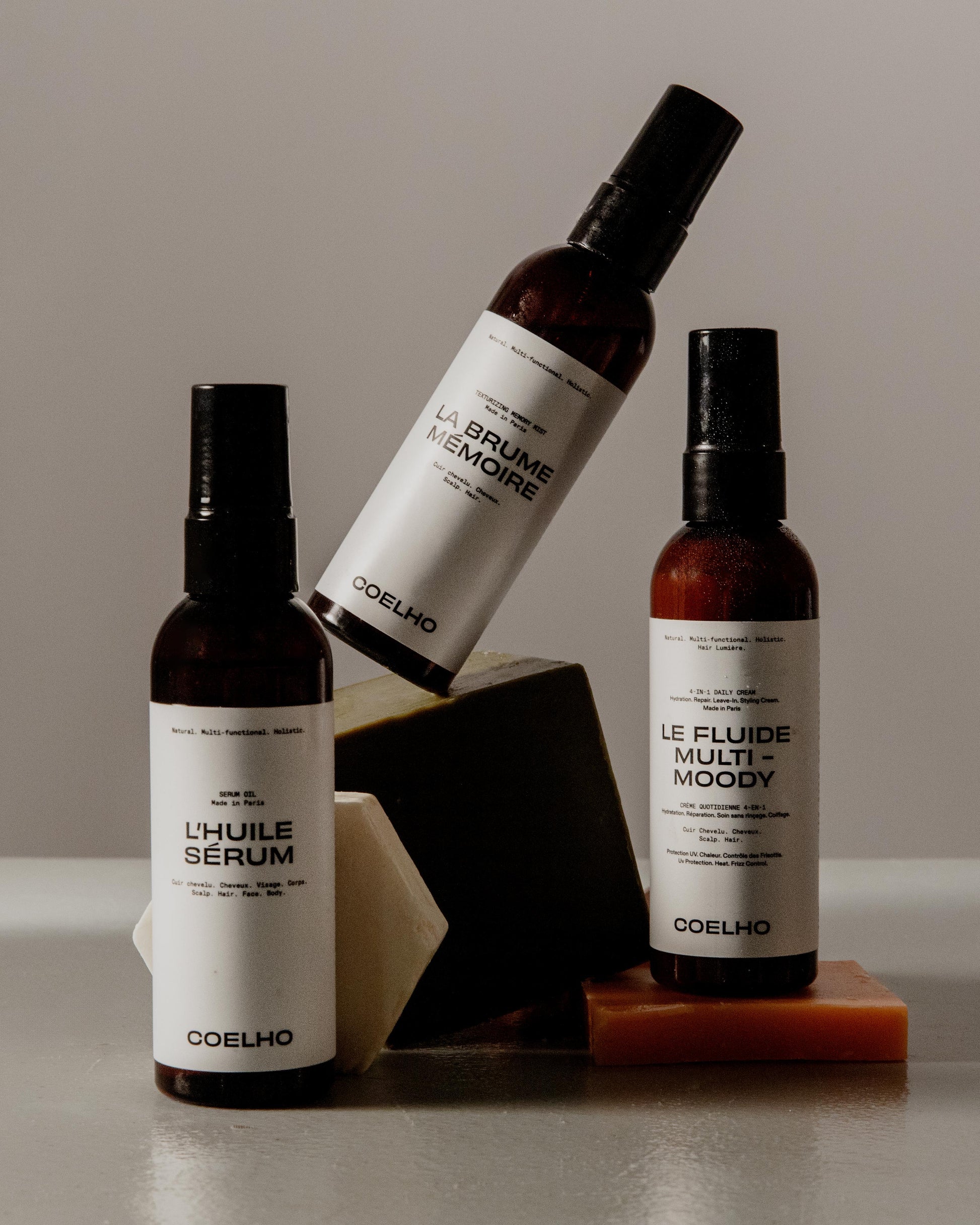 Pour une finition lisse et définie : Vaporisez légèrement LA BRUME MÉMOIRE sur les cheveux coiffés pour ajouter de la définition et protéger contre l'humidité et la pollution.